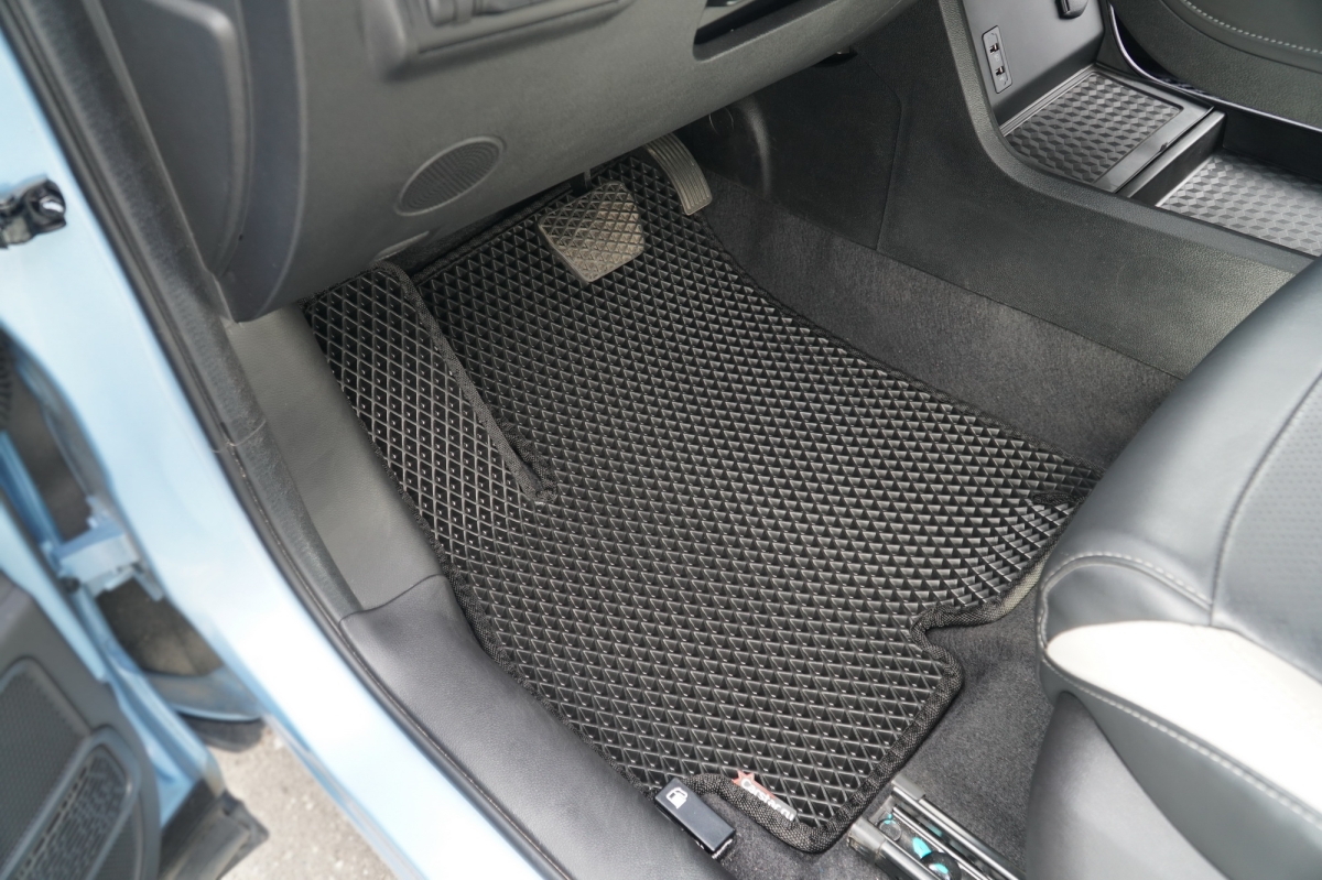 Толщина ковриков EVA составляет 10-12 мм. Глубина ячеек 7-8 мм. Такая толщина ковриков позволяет им служить довольно долго, не протираясь до 3 лет. А благодаря такой глубине ячеек коврик EVA площадью 1 кв.м. способен захватить около 3,5 л жидкости, сохраняя в чистоте вашу обувь и обивку салона.