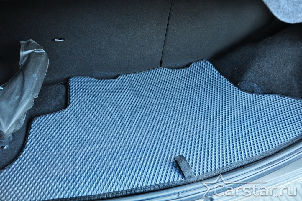 Толщина ковриков EVA составляет 10-12 мм. Глубина ячеек 7-8 мм. Такая толщина ковриков позволяет им служить довольно долго, не протираясь до 3 лет. А благодаря такой глубине ячеек коврик EVA площадью 1 кв.м. способен захватить около 3,5 л жидкости, сохраняя в чистоте вашу обувь и обивку салона.