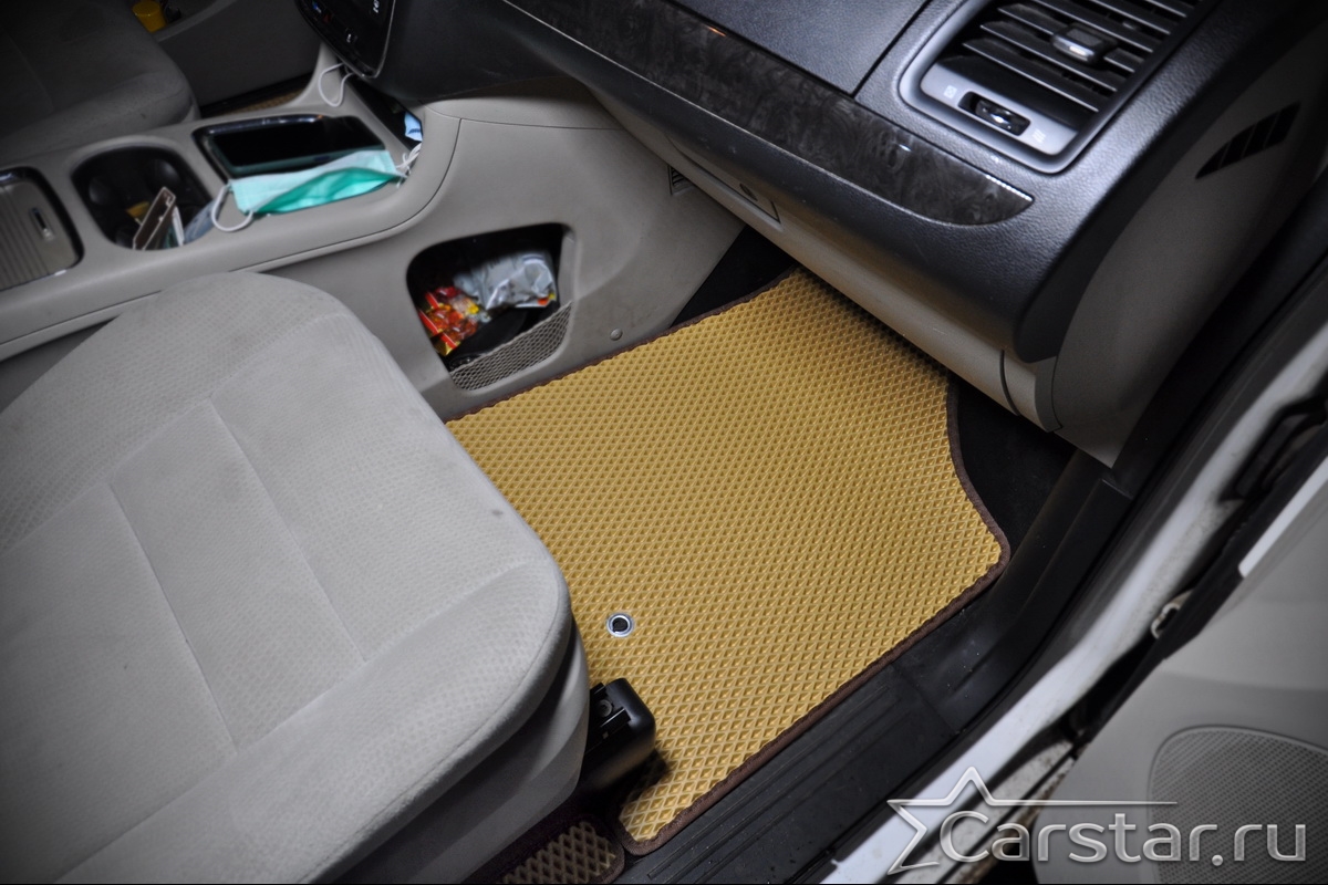Автомобильные коврики EVA Chrysler Town & Country V (2007->) 2 ряд: кресла 1+1 не убираются в пол – это долговечные, удобные и универсальные аксессуары, которые помогут надежно защитить салон и багажник вашего авто от пыли, грязи и влаги в любое время года.