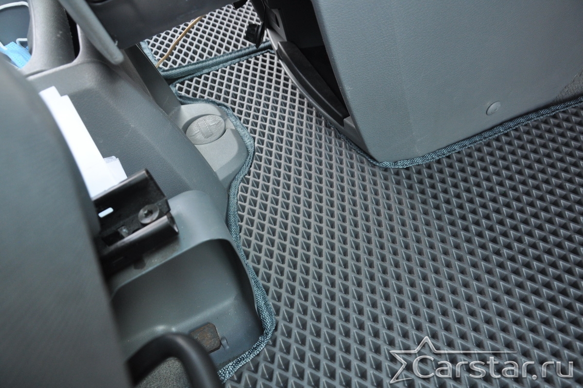 Толщина ковриков EVA составляет 10-12 мм. Глубина ячеек 7-8 мм. Такая толщина ковриков позволяет им служить довольно долго, не протираясь до 3 лет. А благодаря такой глубине ячеек коврик EVA площадью 1 кв.м. способен захватить около 3,5 л жидкости, сохраняя в чистоте вашу обувь и обивку салона.