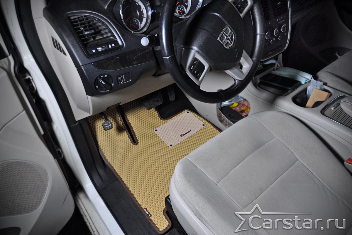 Автомобильные коврики EVA Dodge Grand Caravan V (2007-2020) 2 ряд: кресла 2+1 без прохода – это долговечные, удобные и универсальные аксессуары, которые помогут надежно защитить салон и багажник вашего авто от пыли, грязи и влаги в любое время года.