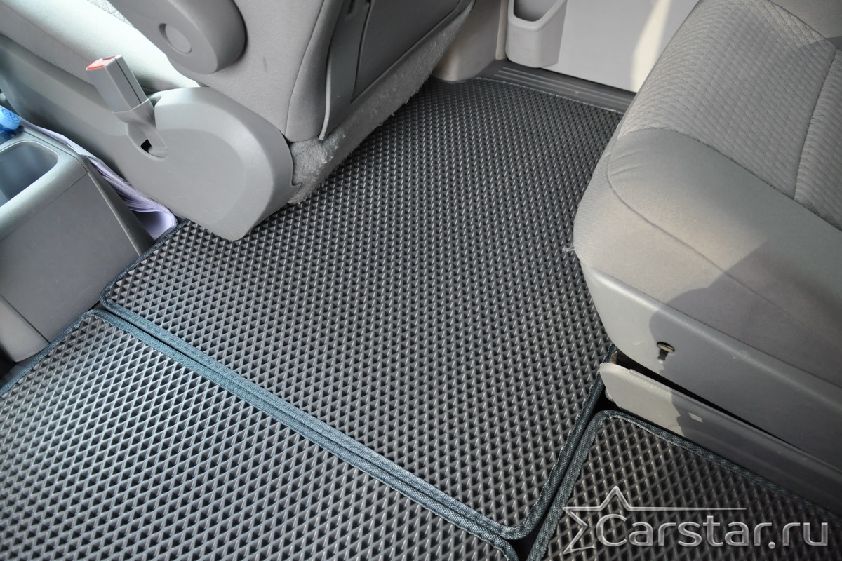 Толщина ковриков EVA составляет 10-12 мм. Глубина ячеек 7-8 мм. Такая толщина ковриков позволяет им служить довольно долго, не протираясь до 3 лет. А благодаря такой глубине ячеек коврик EVA площадью 1 кв.м. способен захватить около 3,5 л жидкости, сохраняя в чистоте вашу обувь и обивку салона.