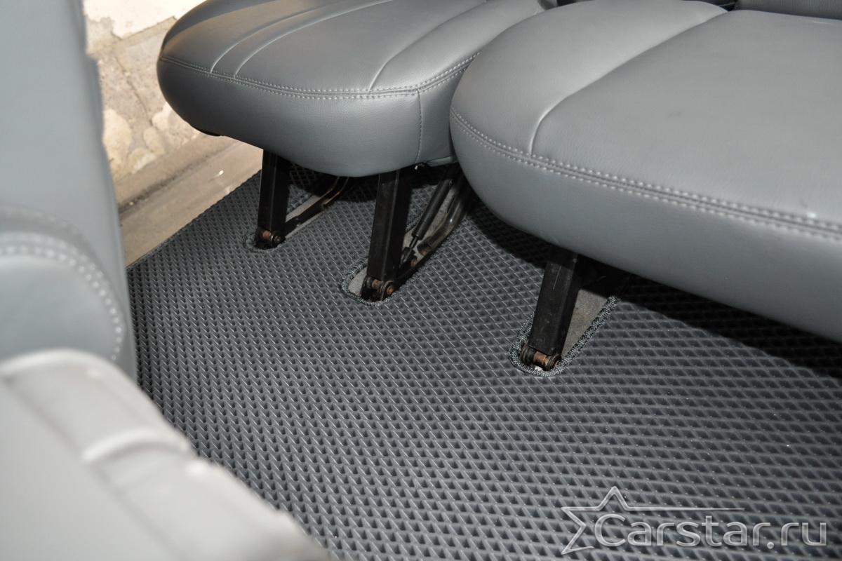 Толщина ковриков EVA составляет 10-12 мм. Глубина ячеек 7-8 мм. Такая толщина ковриков позволяет им служить довольно долго, не протираясь до 3 лет. А благодаря такой глубине ячеек коврик EVA площадью 1 кв.м. способен захватить около 3,5 л жидкости, сохраняя в чистоте вашу обувь и обивку салона.