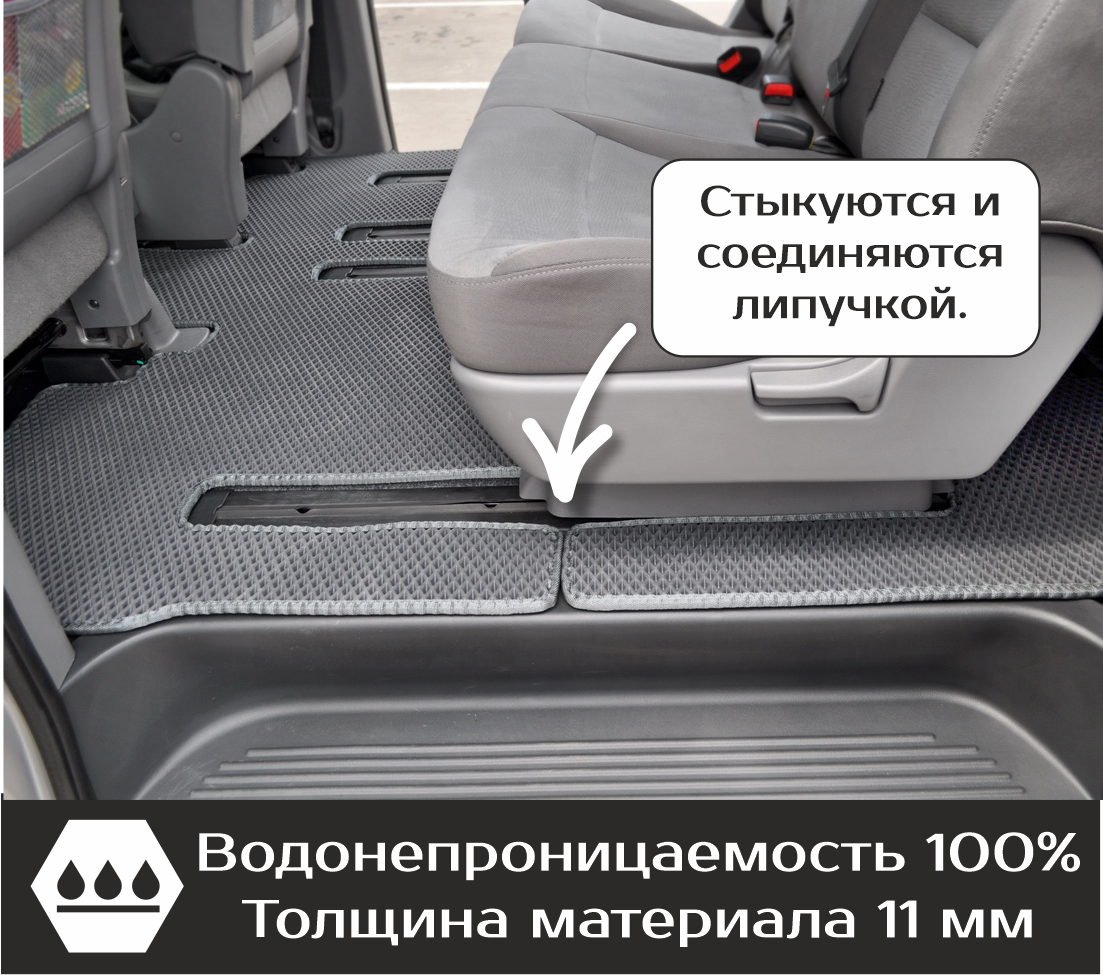Автомобильные коврики EVA Hyundai H-1 (2007-2018) – это долговечные, удобные и универсальные аксессуары, которые помогут надежно защитить салон и багажник вашего авто от пыли, грязи и влаги в любое время года.