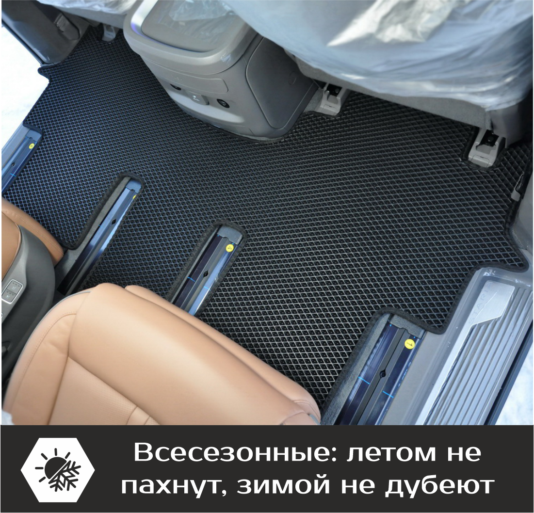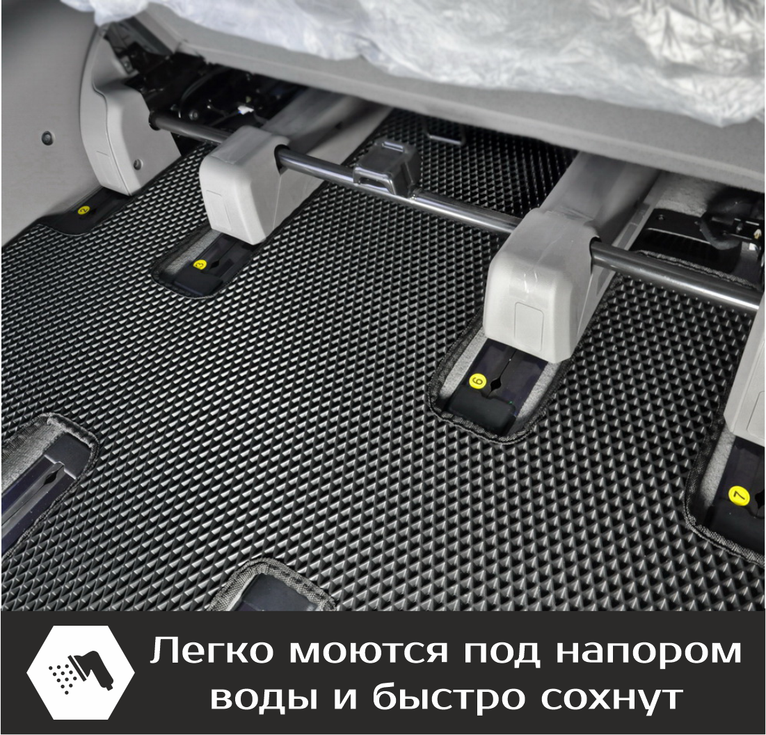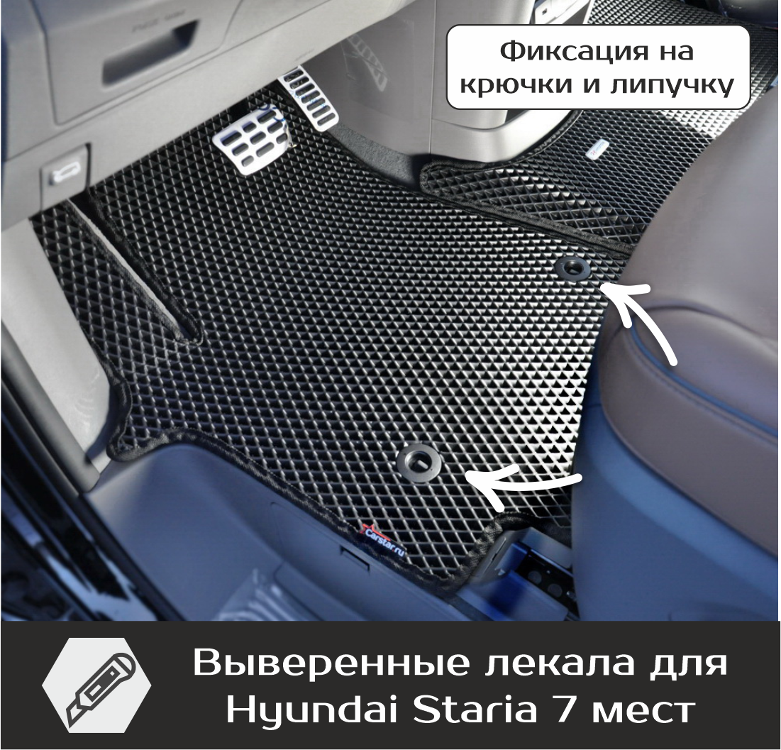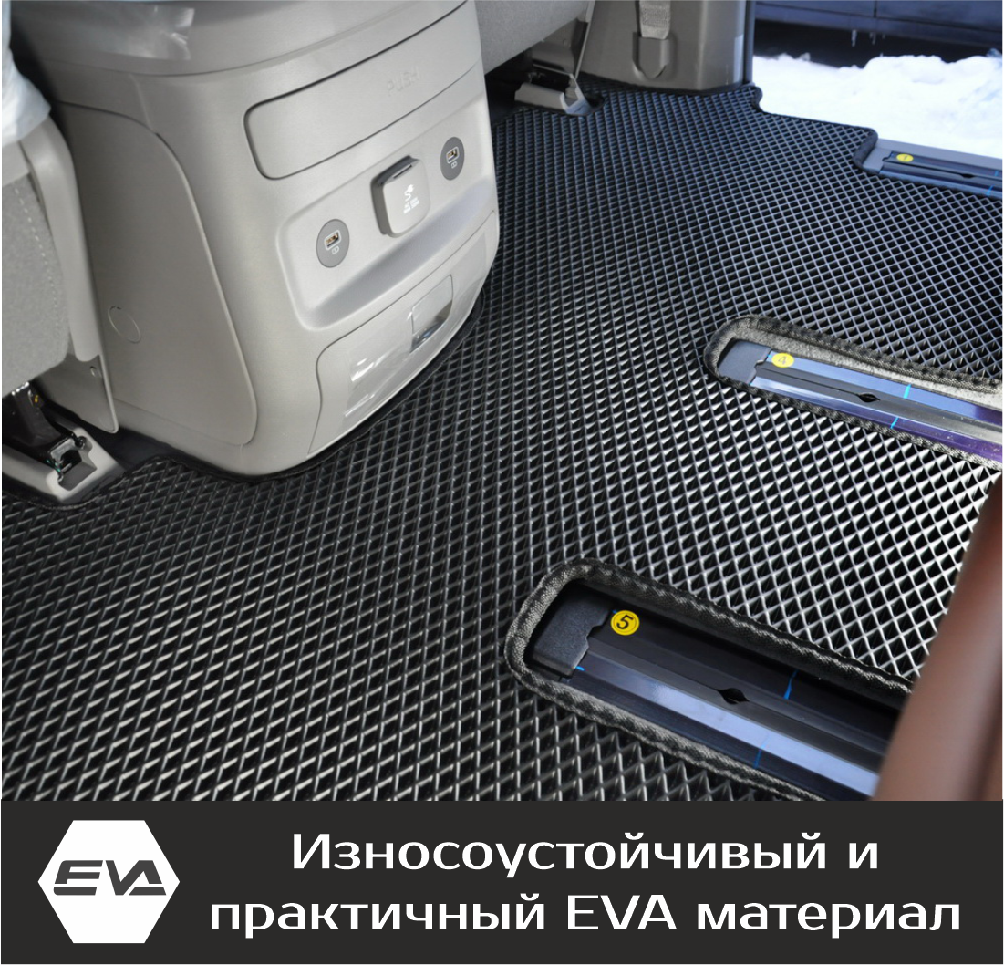 Автомобильные коврики EVA Hyundai Staria 7 мест (2021->) – это долговечные, удобные и универсальные аксессуары, которые помогут надежно защитить салон и багажник вашего авто от пыли, грязи и влаги в любое время года.