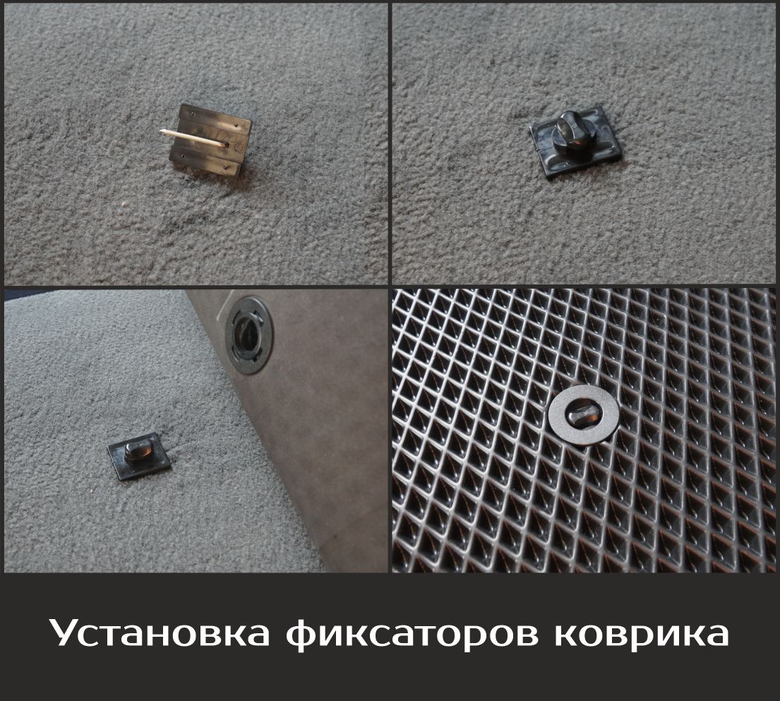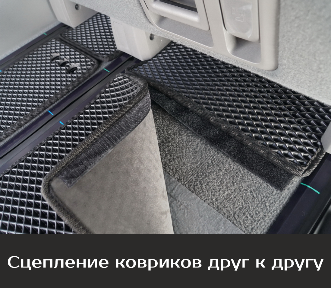 Коврики EVA надёжно крепятся с помощью оригинальных систем фиксации. Благодаря клипсам и липучке коврики защищены от смещений, что обеспечивает комфорт и безопасность вождения. Максимальное удобство также достигается точными, улучшенными лекалами для каждого автомобиля.