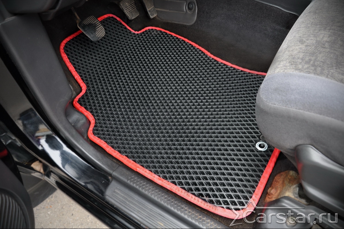 Толщина ковриков EVA составляет 10-12 мм. Глубина ячеек 7-8 мм. Такая толщина ковриков позволяет им служить довольно долго, не протираясь до 3 лет. А благодаря такой глубине ячеек коврик EVA площадью 1 кв.м. способен захватить около 3,5 л жидкости, сохраняя в чистоте вашу обувь и обивку салона.