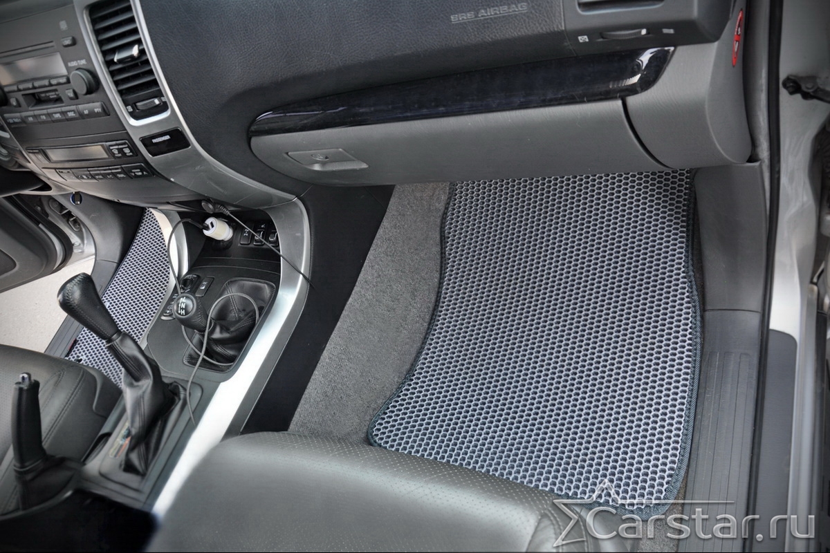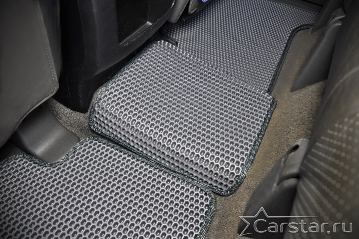 Толщина ковриков EVA составляет 10-12 мм. Глубина ячеек 7-8 мм. Такая толщина ковриков позволяет им служить довольно долго, не протираясь до 3 лет. А благодаря такой глубине ячеек коврик EVA площадью 1 кв.м. способен захватить около 3,5 л жидкости, сохраняя в чистоте вашу обувь и обивку салона.