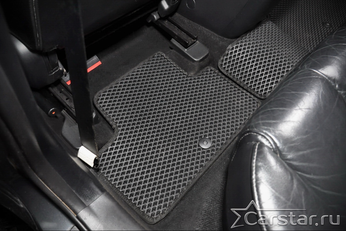 Толщина ковриков EVA составляет 10-12 мм. Глубина ячеек 7-8 мм. Такая толщина ковриков позволяет им служить довольно долго, не протираясь до 3 лет. А благодаря такой глубине ячеек коврик EVA площадью 1 кв.м. способен захватить около 3,5 л жидкости, сохраняя в чистоте вашу обувь и обивку салона.
