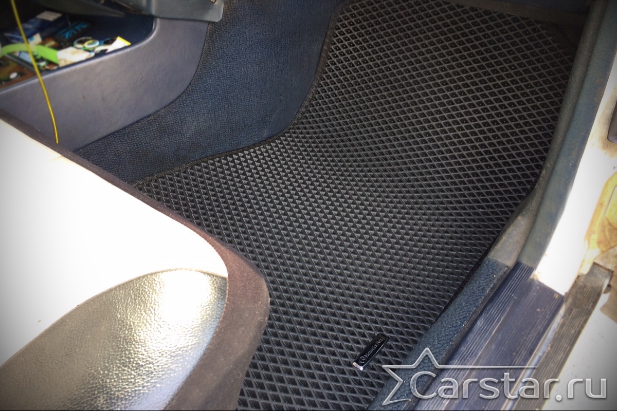 Толщина ковриков EVA составляет 10-12 мм. Глубина ячеек 7-8 мм. Такая толщина ковриков позволяет им служить довольно долго, не протираясь до 3 лет. А благодаря такой глубине ячеек коврик EVA площадью 1 кв.м. способен захватить около 3,5 л жидкости, сохраняя в чистоте вашу обувь и обивку салона.