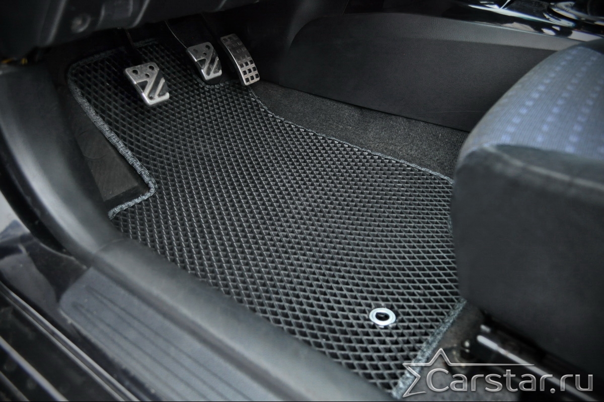 Автомобильные коврики EVA прекрасно подходят для всех существующих марок и моделей авто, здесь вы сможете заказать оптимальный аксессуар любого возможного цвета. По размерам они больше, чем стандартные резиновые коврики, поэтому покрывают максимальную площадь пола в салоне. А двойная система креплений (клипсы и липучки) позволяет надежно зафиксировать коврики в нужном месте.