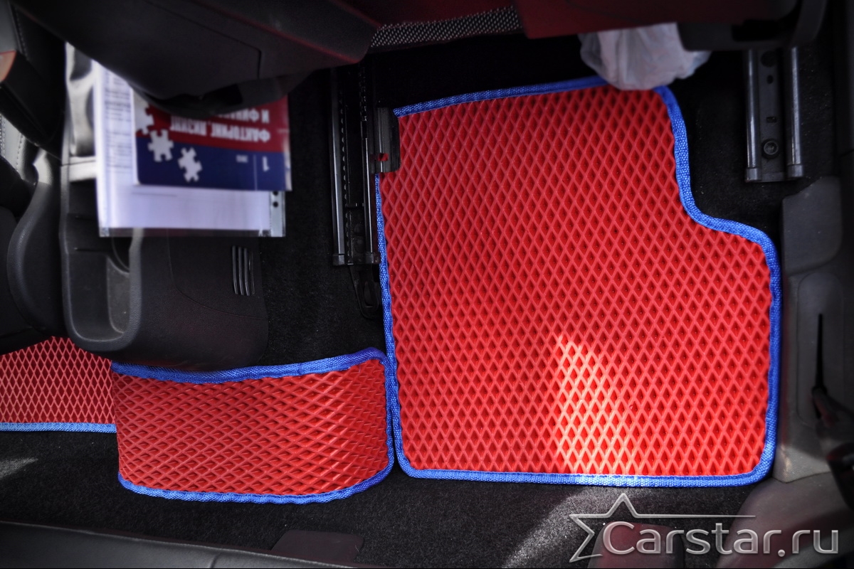 Автомобильные коврики EVA прекрасно подходят для всех существующих марок и моделей авто, здесь вы сможете заказать оптимальный аксессуар любого возможного цвета. По размерам они больше, чем стандартные резиновые коврики, поэтому покрывают максимальную площадь пола в салоне. А двойная система креплений (клипсы и липучки) позволяет надежно зафиксировать коврики в нужном месте.