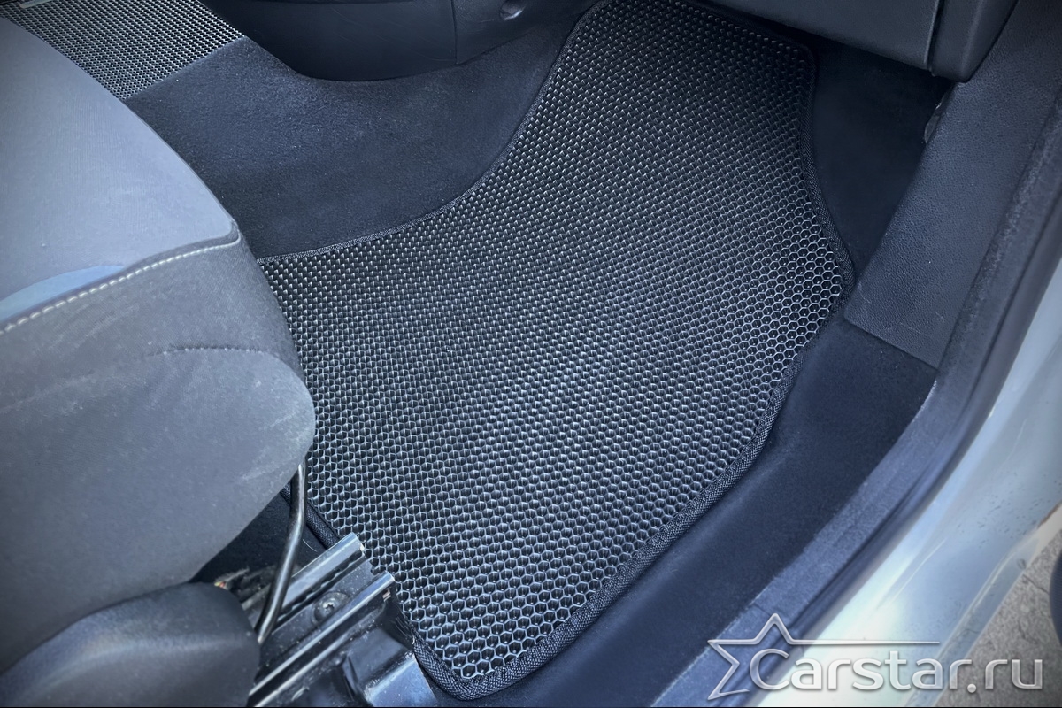 Толщина ковриков EVA составляет 10-12 мм. Глубина ячеек 7-8 мм. Такая толщина ковриков позволяет им служить довольно долго, не протираясь до 3 лет. А благодаря такой глубине ячеек коврик EVA площадью 1 кв.м. способен захватить около 3,5 л жидкости, сохраняя в чистоте вашу обувь и обивку салона.