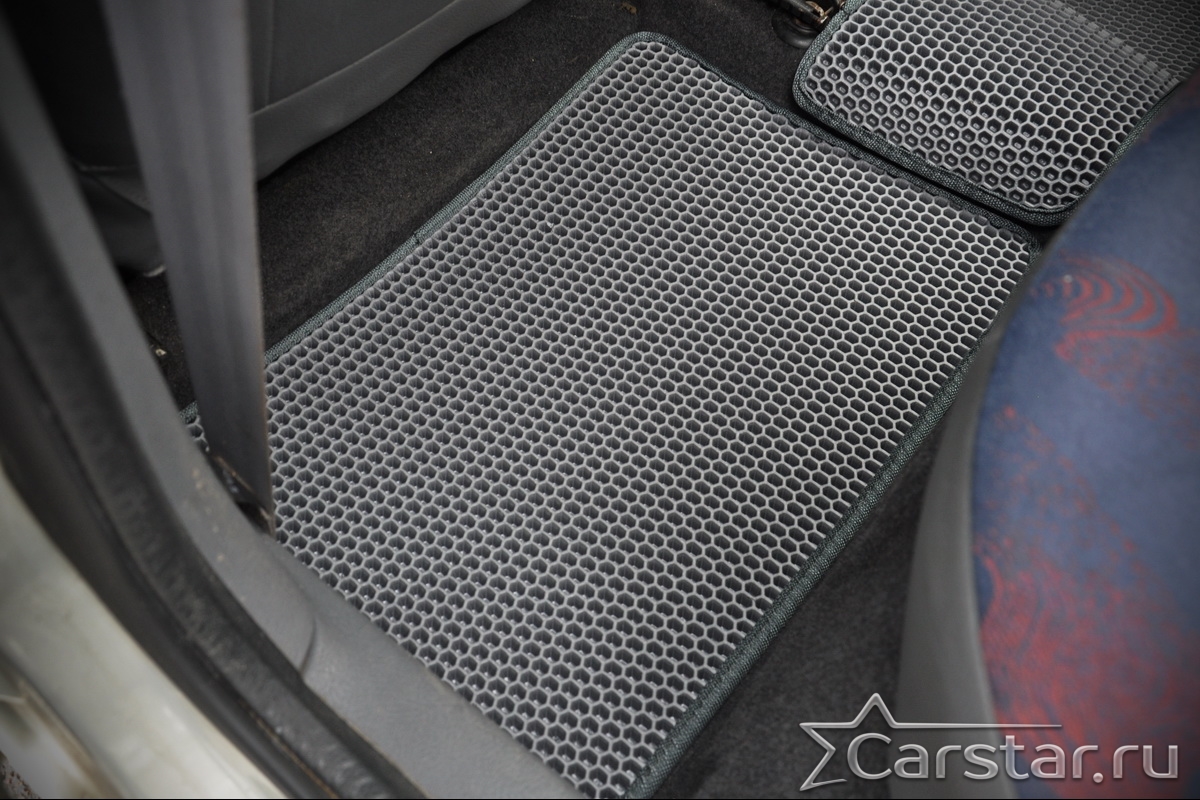Толщина ковриков EVA составляет 10-12 мм. Глубина ячеек 7-8 мм. Такая толщина ковриков позволяет им служить довольно долго, не протираясь до 3 лет. А благодаря такой глубине ячеек коврик EVA площадью 1 кв.м. способен захватить около 3,5 л жидкости, сохраняя в чистоте вашу обувь и обивку салона.