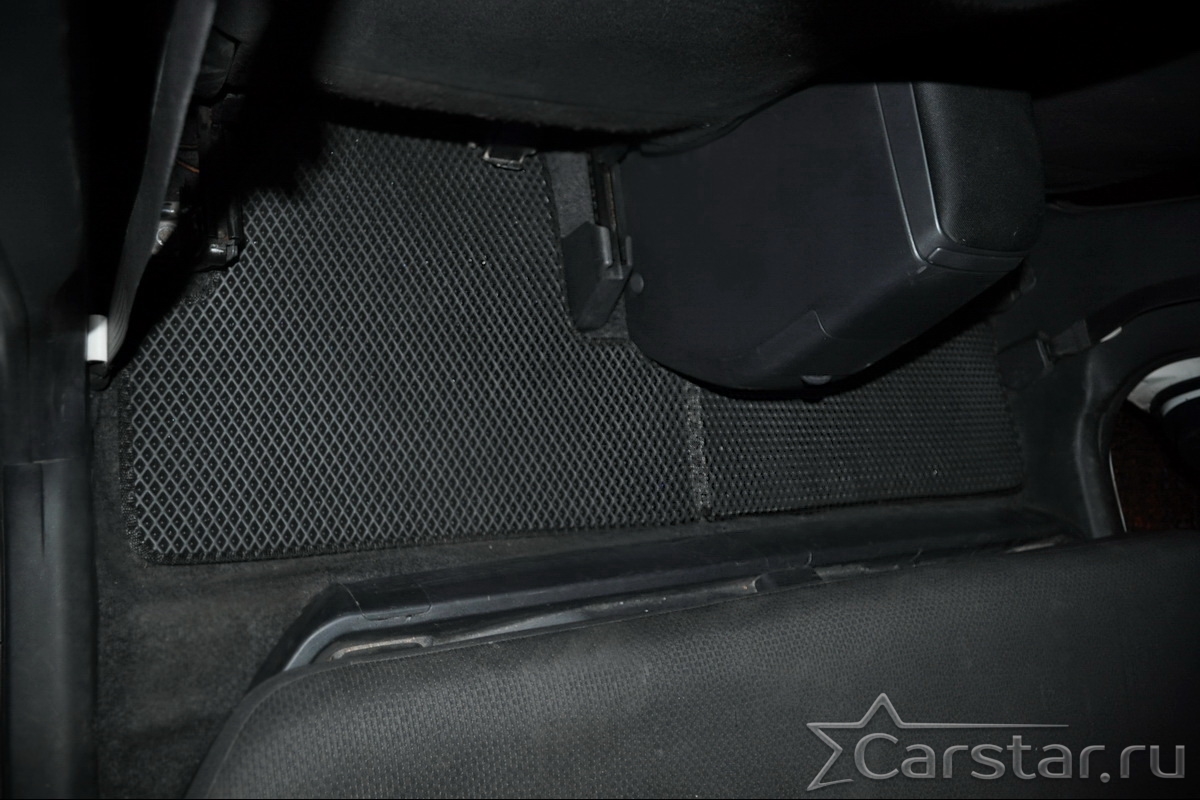 Толщина ковриков EVA составляет 10-12 мм. Глубина ячеек 7-8 мм. Такая толщина ковриков позволяет им служить довольно долго, не протираясь до 3 лет. А благодаря такой глубине ячеек коврик EVA площадью 1 кв.м. способен захватить около 3,5 л жидкости, сохраняя в чистоте вашу обувь и обивку салона.