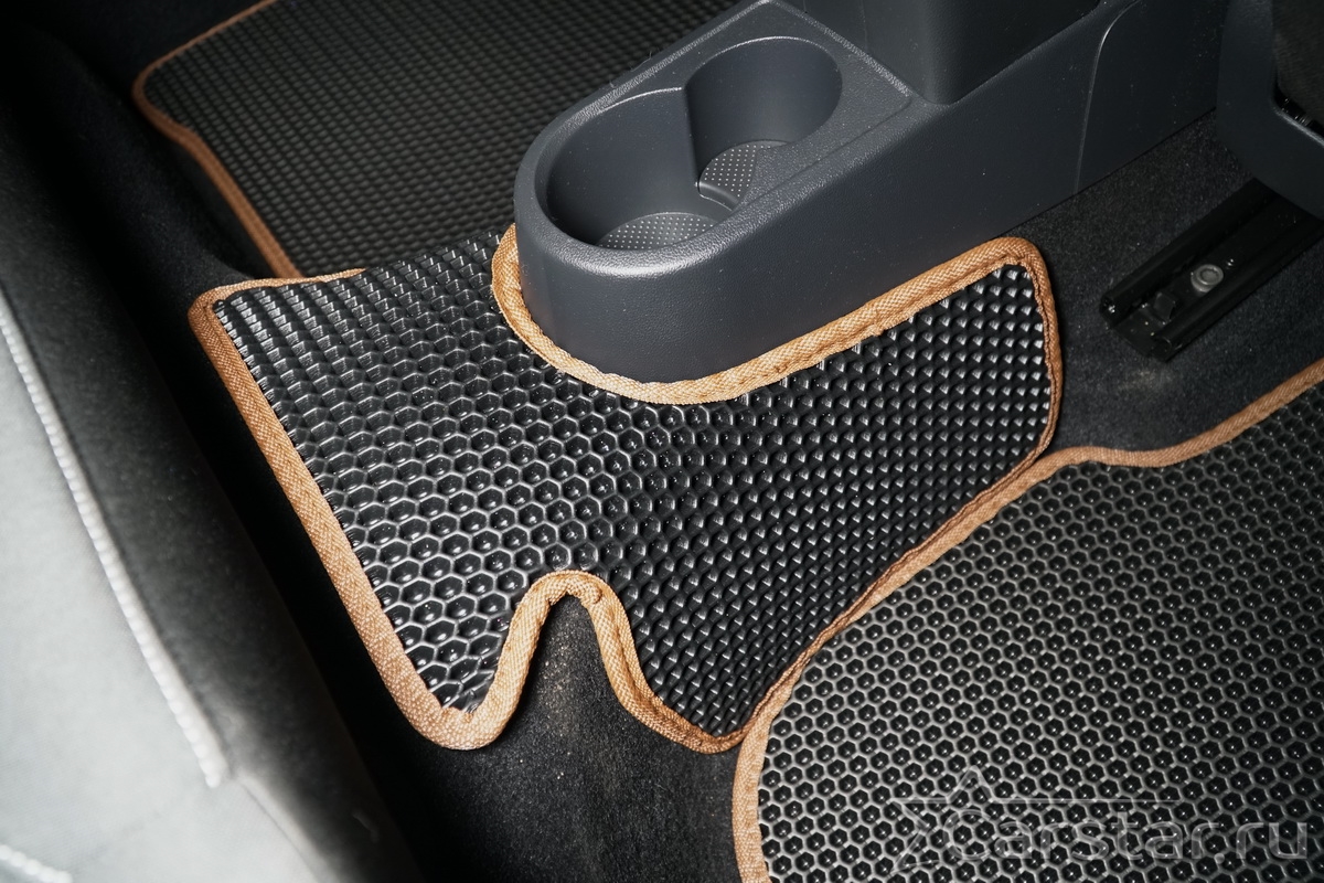 Толщина ковриков EVA составляет 10-12 мм. Глубина ячеек 7-8 мм. Такая толщина ковриков позволяет им служить довольно долго, не протираясь до 3 лет. А благодаря такой глубине ячеек коврик EVA площадью 1 кв.м. способен захватить около 3,5 л жидкости, сохраняя в чистоте вашу обувь и обивку салона.