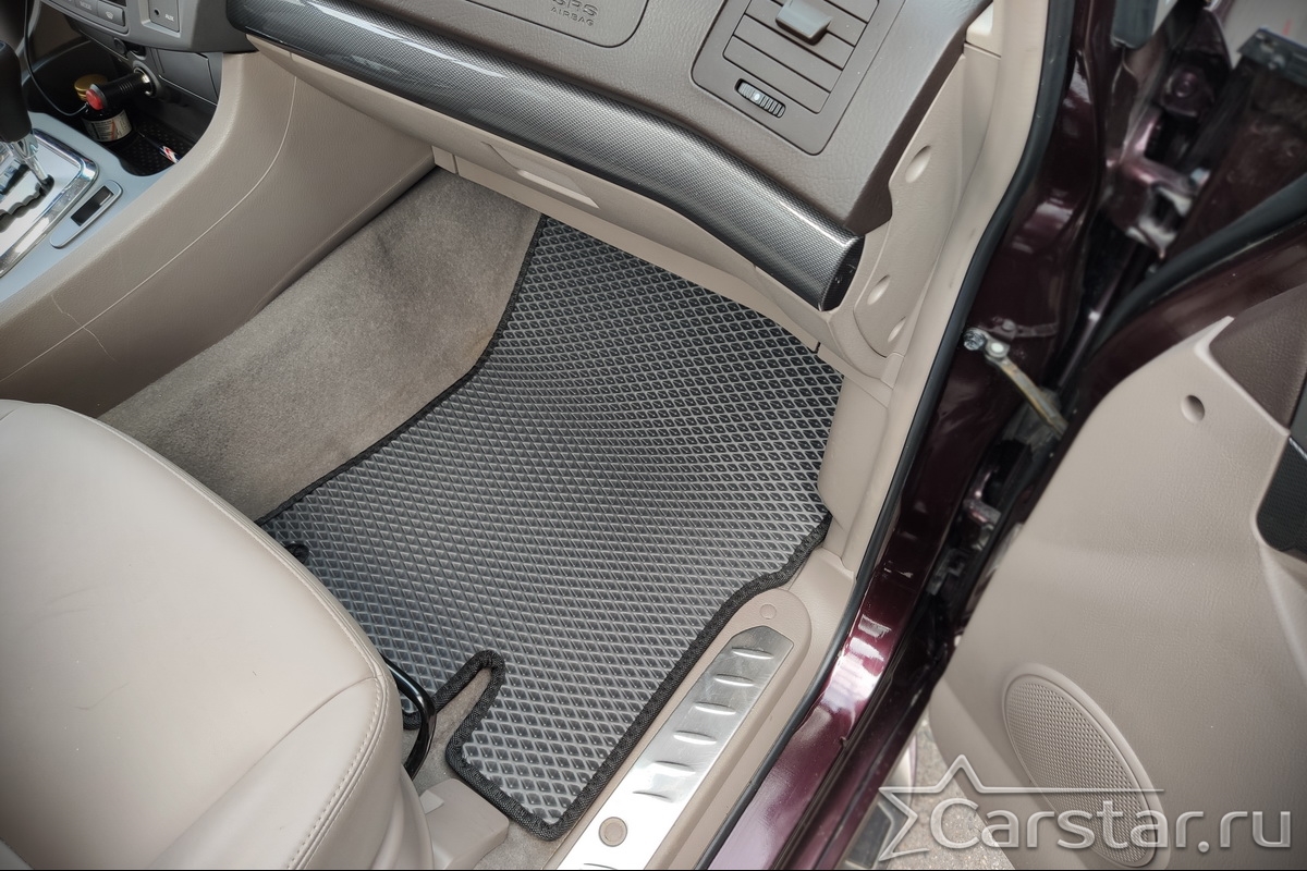 Толщина ковриков EVA составляет 10-12 мм. Глубина ячеек 7-8 мм. Такая толщина ковриков позволяет им служить довольно долго, не протираясь до 3 лет. А благодаря такой глубине ячеек коврик EVA площадью 1 кв.м. способен захватить около 3,5 л жидкости, сохраняя в чистоте вашу обувь и обивку салона.