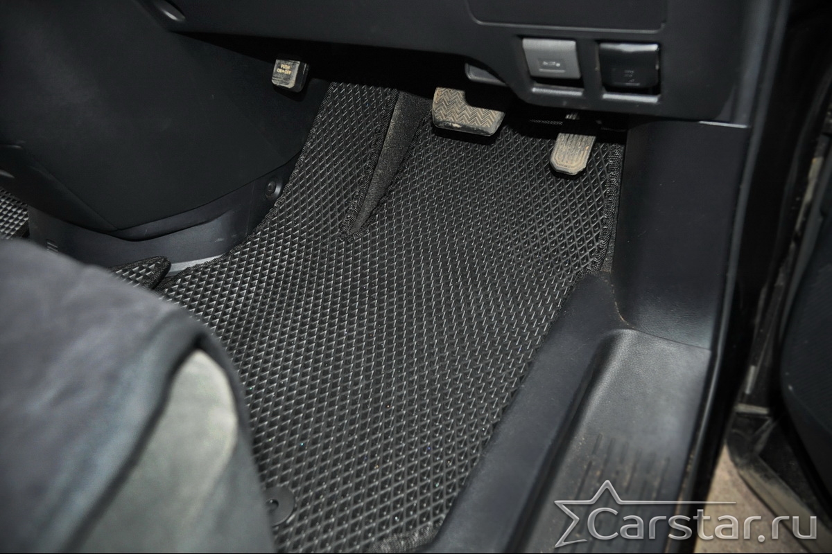 Толщина ковриков EVA составляет 10-12 мм. Глубина ячеек 7-8 мм. Такая толщина ковриков позволяет им служить довольно долго, не протираясь до 3 лет. А благодаря такой глубине ячеек коврик EVA площадью 1 кв.м. способен захватить около 3,5 л жидкости, сохраняя в чистоте вашу обувь и обивку салона.