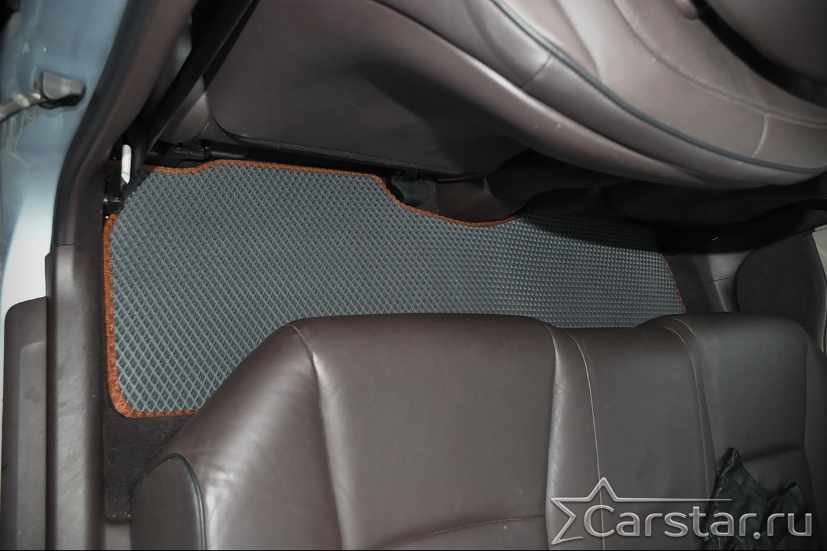 Толщина ковриков EVA составляет 10-12 мм. Глубина ячеек 7-8 мм. Такая толщина ковриков позволяет им служить довольно долго, не протираясь до 3 лет. А благодаря такой глубине ячеек коврик EVA площадью 1 кв.м. способен захватить около 3,5 л жидкости, сохраняя в чистоте вашу обувь и обивку салона.