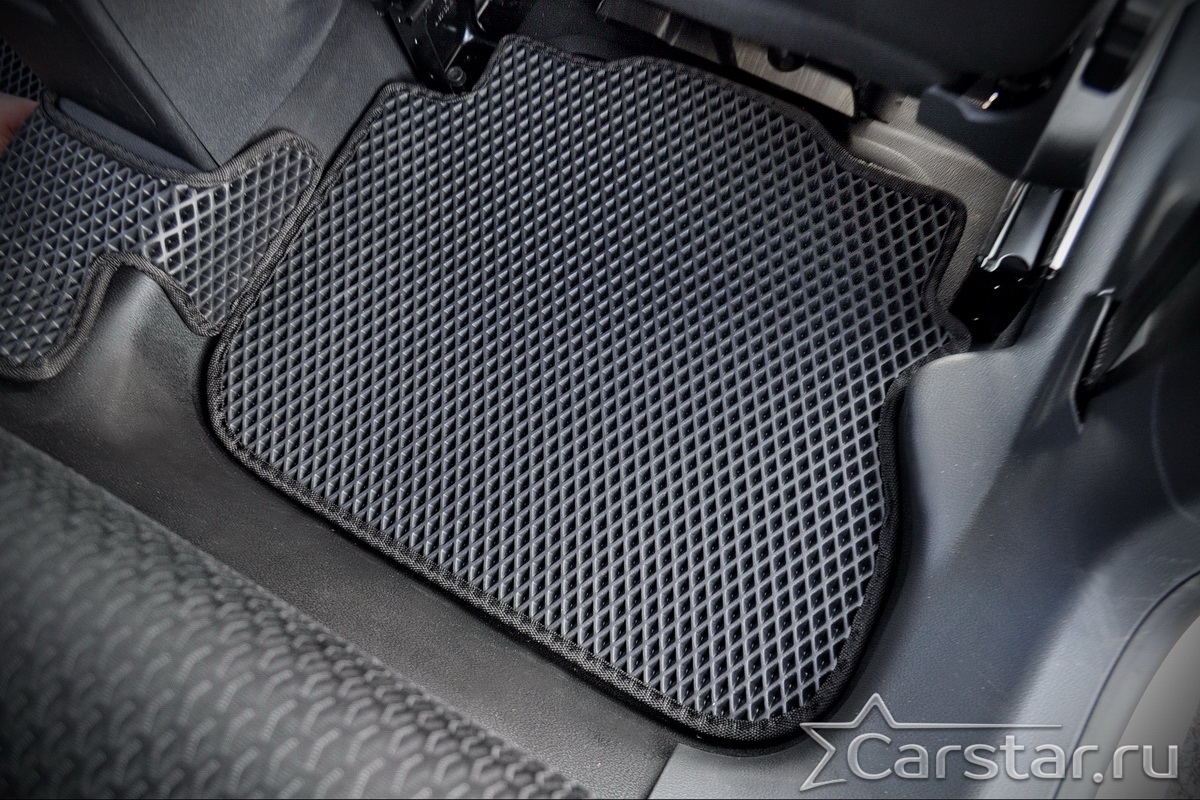 Толщина ковриков EVA составляет 10-12 мм. Глубина ячеек 7-8 мм. Такая толщина ковриков позволяет им служить довольно долго, не протираясь до 3 лет. А благодаря такой глубине ячеек коврик EVA площадью 1 кв.м. способен захватить около 3,5 л жидкости, сохраняя в чистоте вашу обувь и обивку салона.