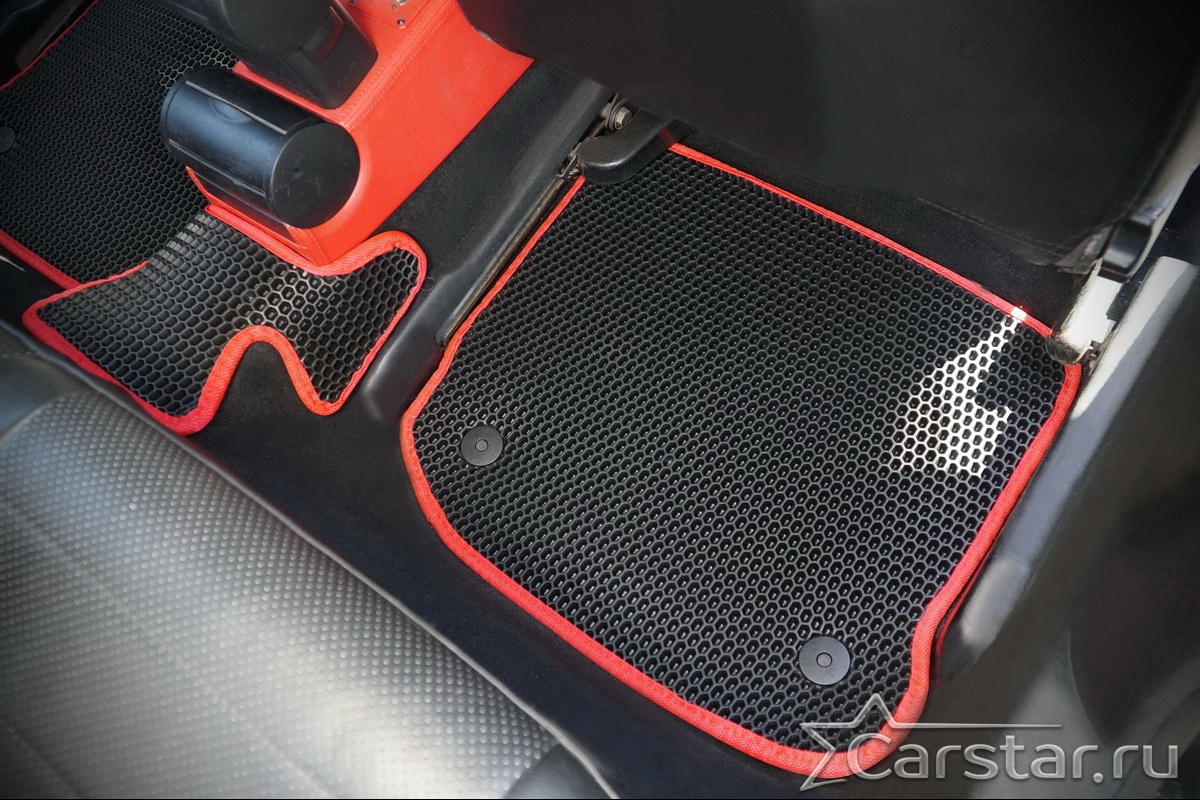 Коврики EVA надёжно крепятся с помощью оригинальных систем фиксации. Благодаря клипсам и липучке коврики защищены от смещений, что обеспечивает комфорт и безопасность вождения. Максимальное удобство также достигается точными, улучшенными лекалами для каждого автомобиля.