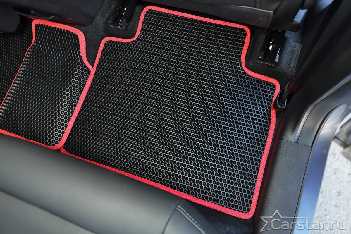 Текстильные коврики надёжно крепятся с помощью оригинальных систем фиксации. Обратная сторона имеет противоскользящее покрытие, что обеспечивает защиту от смещений и безопасность. Максимальное удобство достигается точными лекалами.