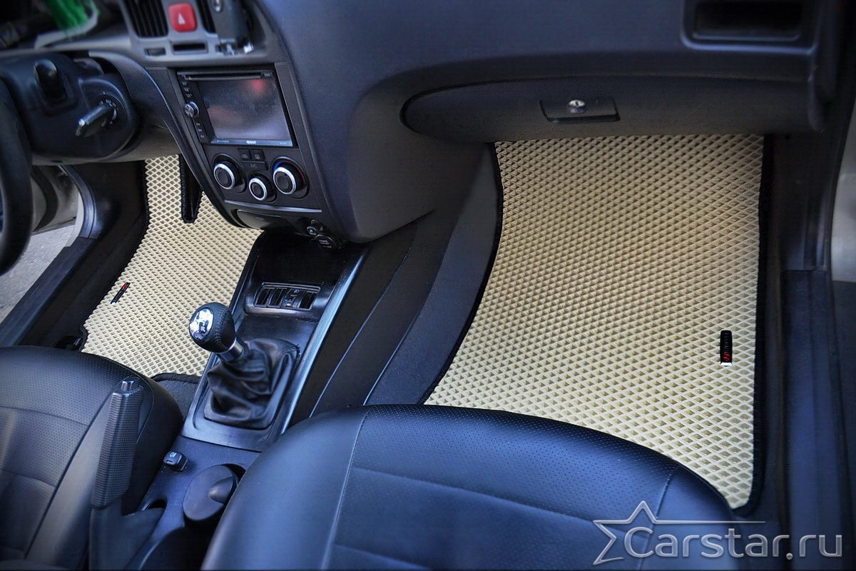 Приятный на ощупь густой плотный ворс текстильных ковриков придаст салону роскошный вид. Широкой выбор цветовой палитры ковролина и окантовки коврика не оставит равнодушным ни одного искушенного автолюбителя.
