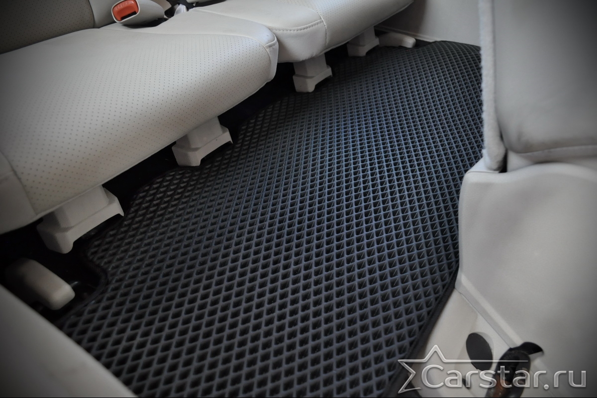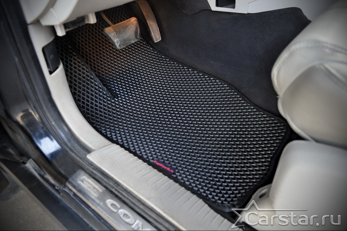 Текстильные коврики надёжно крепятся с помощью оригинальных систем фиксации. Обратная сторона имеет противоскользящее покрытие, что обеспечивает защиту от смещений и безопасность. Максимальное удобство достигается точными лекалами.