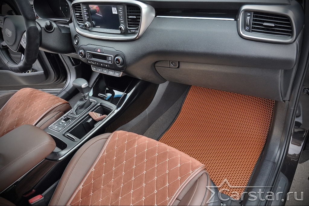 Текстильные автомобильные коврики Kia Sorento III Prime 3 ряда (2014-2020) – это классический аксессуар, который обеспечит салону автомобиля неизменную чистоту, порядок и уют. Компания Carstar предлагает изделия из качественного ковролина в сочетании с полипропиленовым основанием на шипах, такая комбинация делает их прочными и водонепроницаемыми.