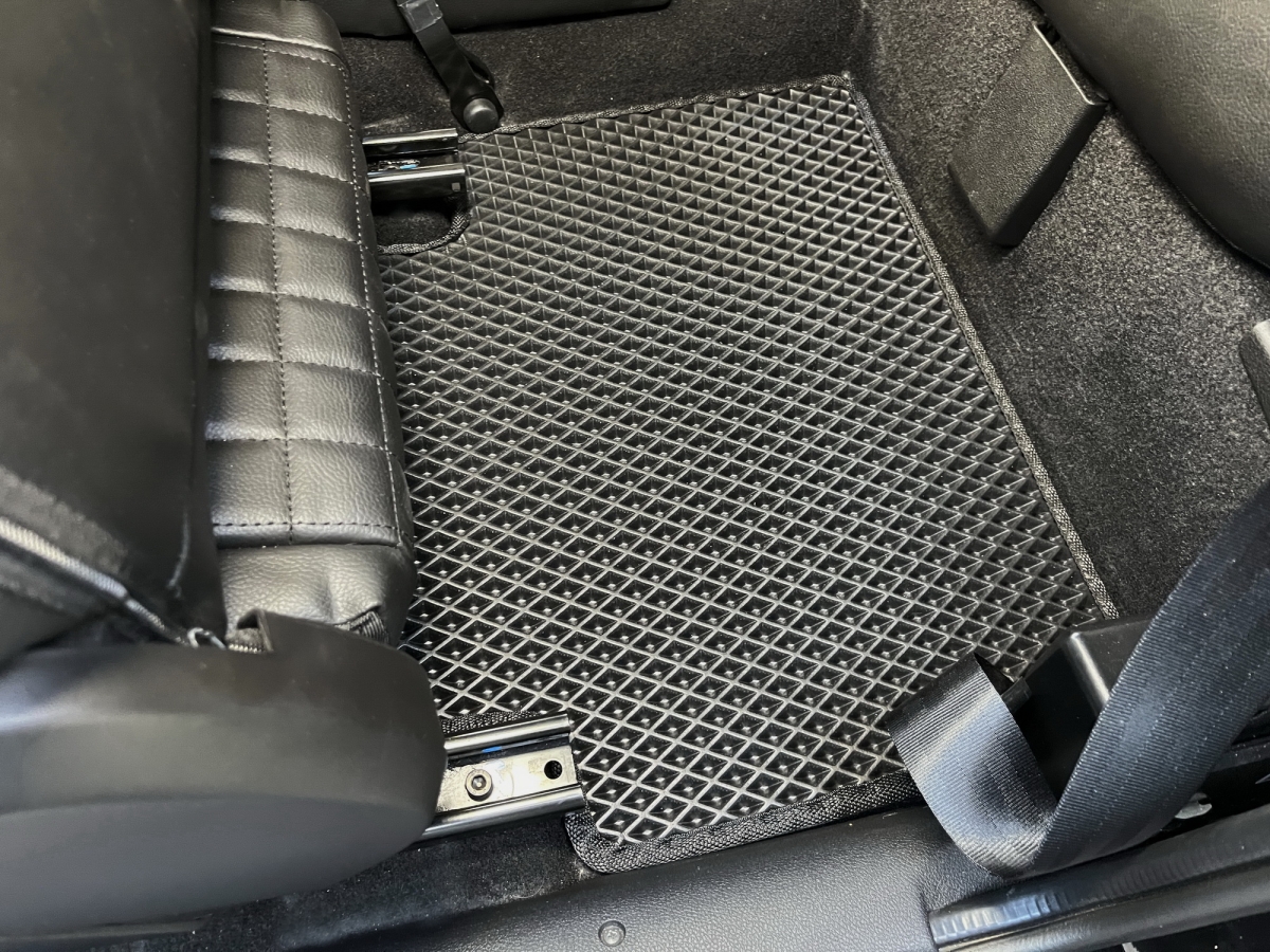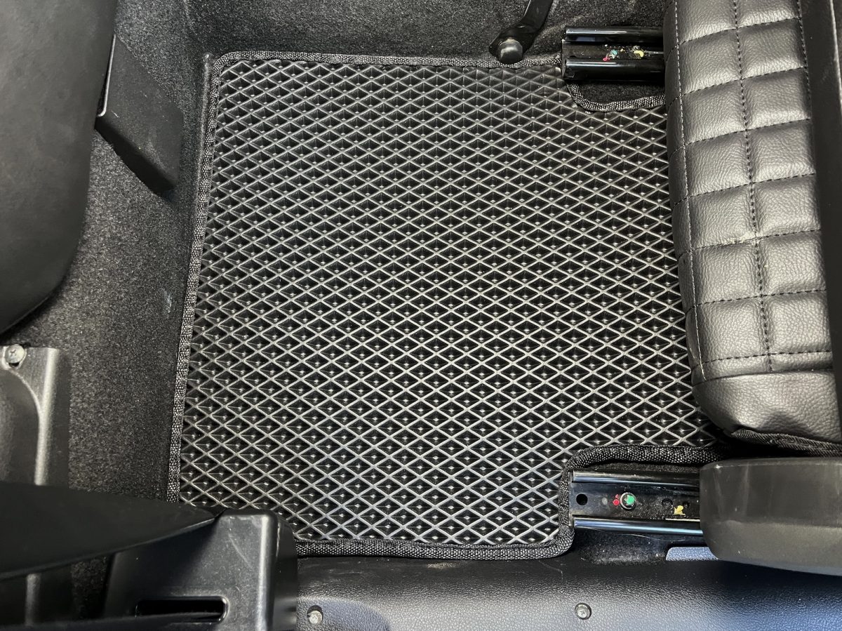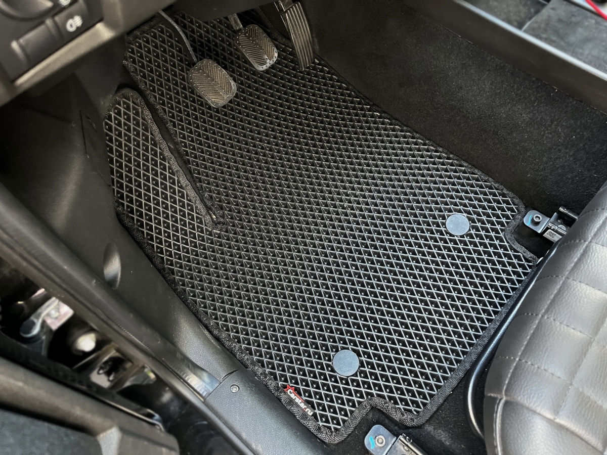 Текстильные коврики надёжно крепятся с помощью оригинальных систем фиксации. Обратная сторона имеет противоскользящее покрытие, что обеспечивает защиту от смещений и безопасность. Максимальное удобство достигается точными лекалами.