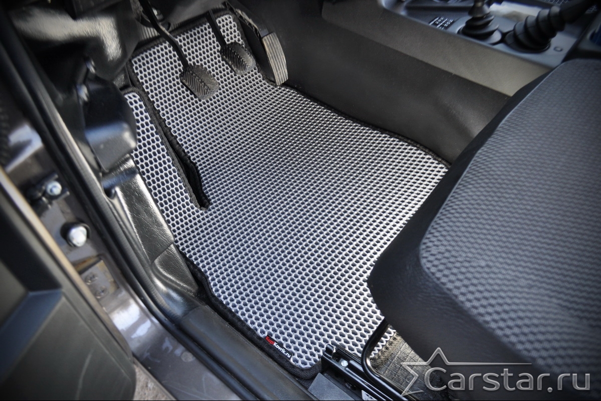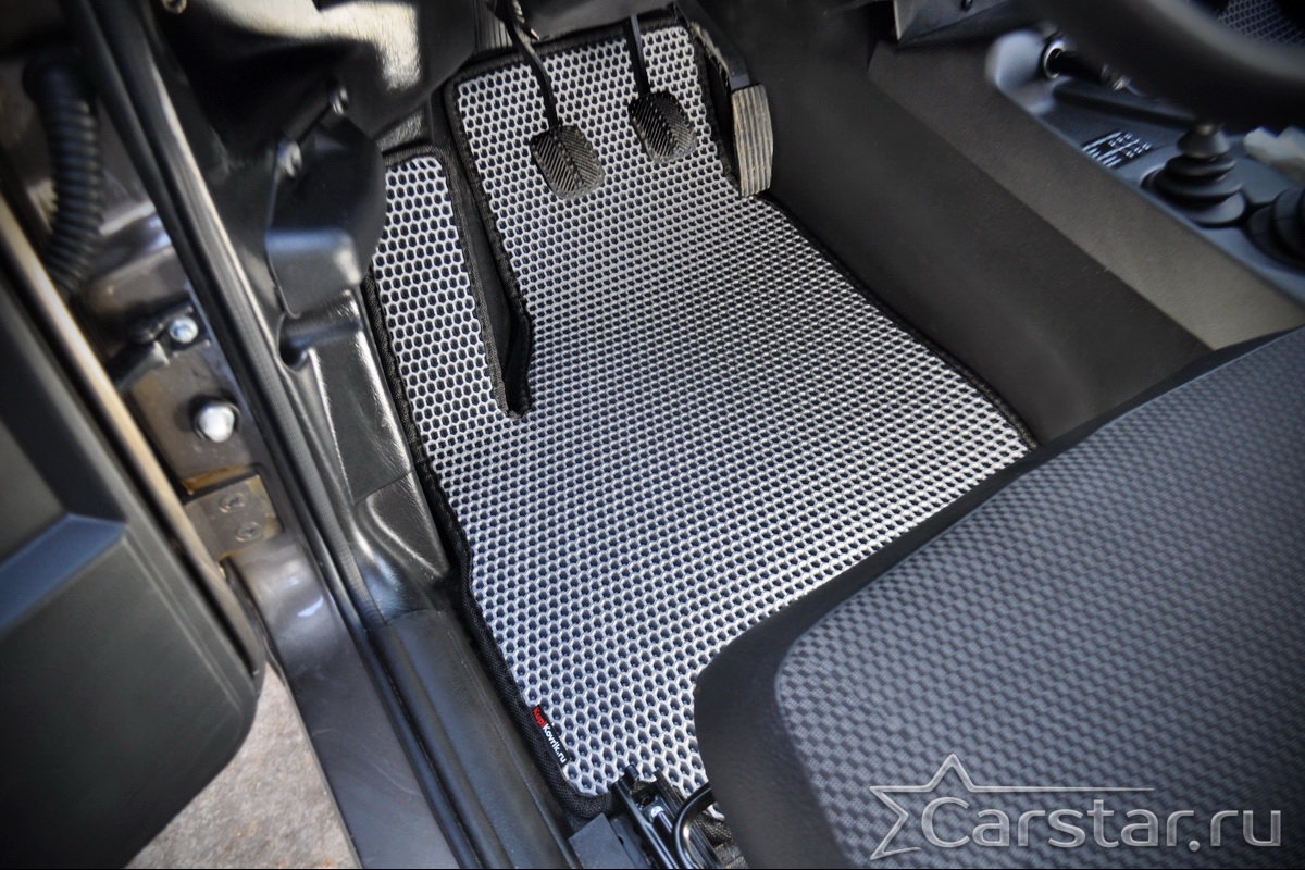 Текстильные коврики надёжно крепятся с помощью оригинальных систем фиксации. Обратная сторона имеет противоскользящее покрытие, что обеспечивает защиту от смещений и безопасность. Максимальное удобство достигается точными лекалами.