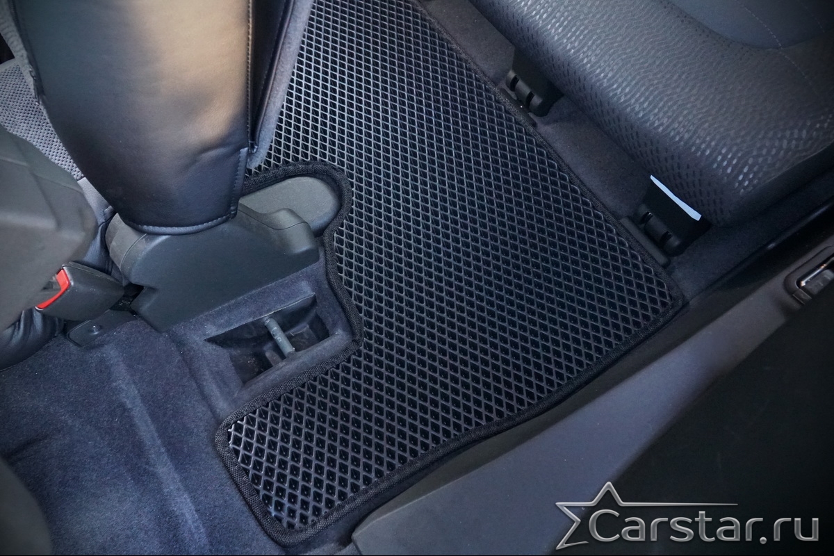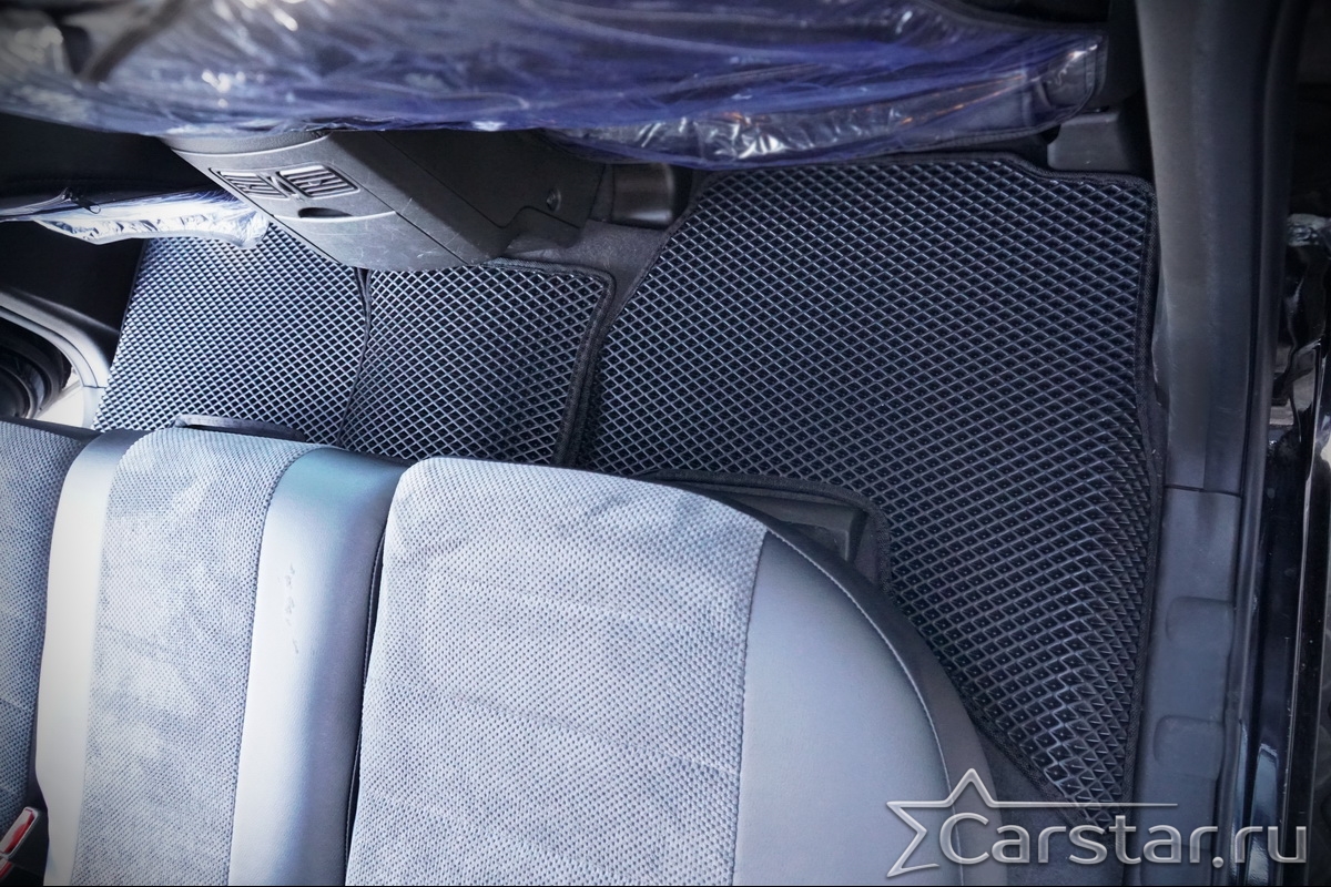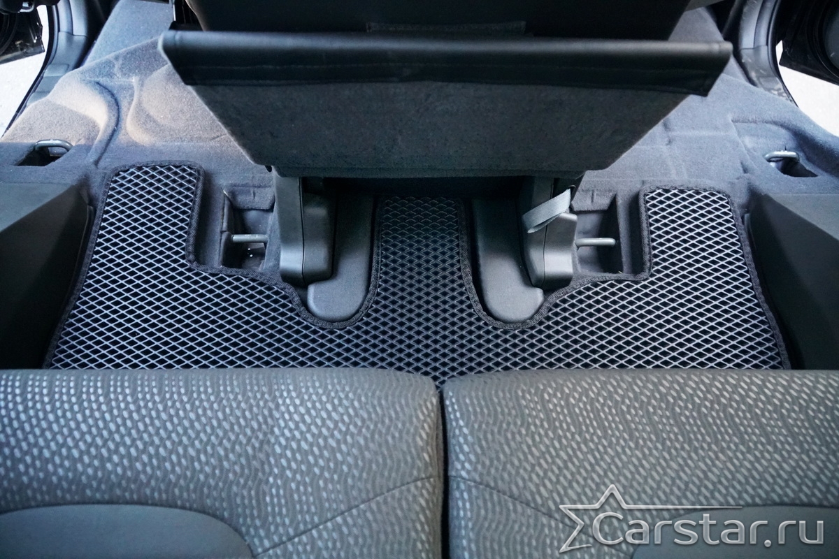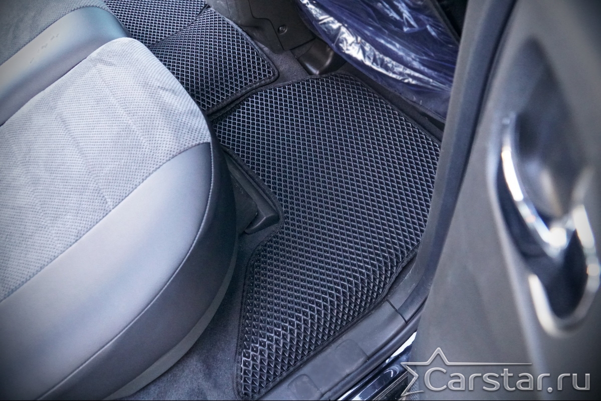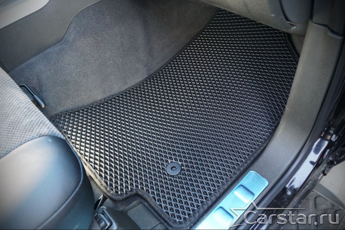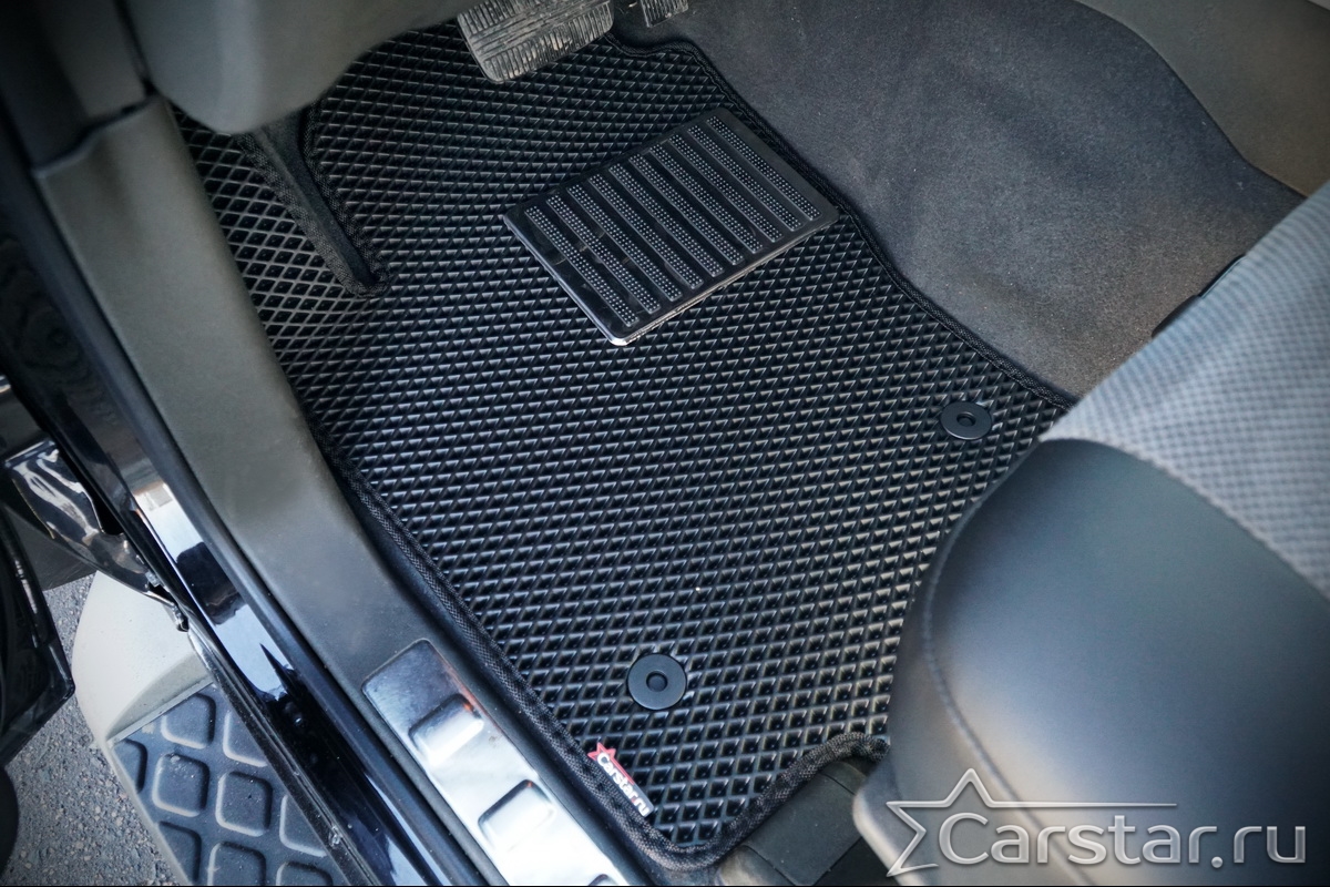 Текстильные коврики надёжно крепятся с помощью оригинальных систем фиксации. Обратная сторона имеет противоскользящее покрытие, что обеспечивает защиту от смещений и безопасность. Максимальное удобство достигается точными лекалами.