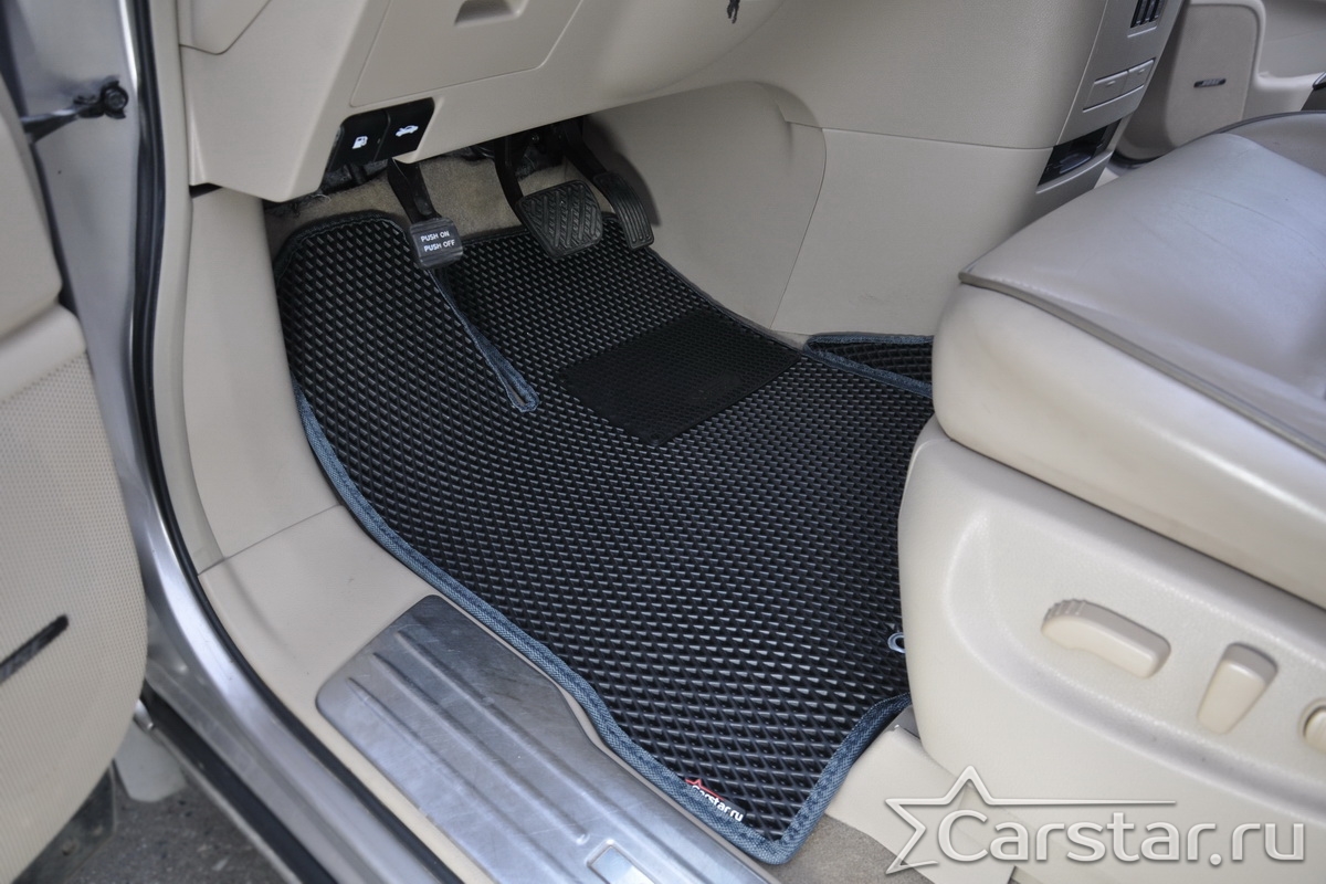 Текстильные коврики надёжно крепятся с помощью оригинальных систем фиксации. Обратная сторона имеет противоскользящее покрытие, что обеспечивает защиту от смещений и безопасность. Максимальное удобство достигается точными лекалами.