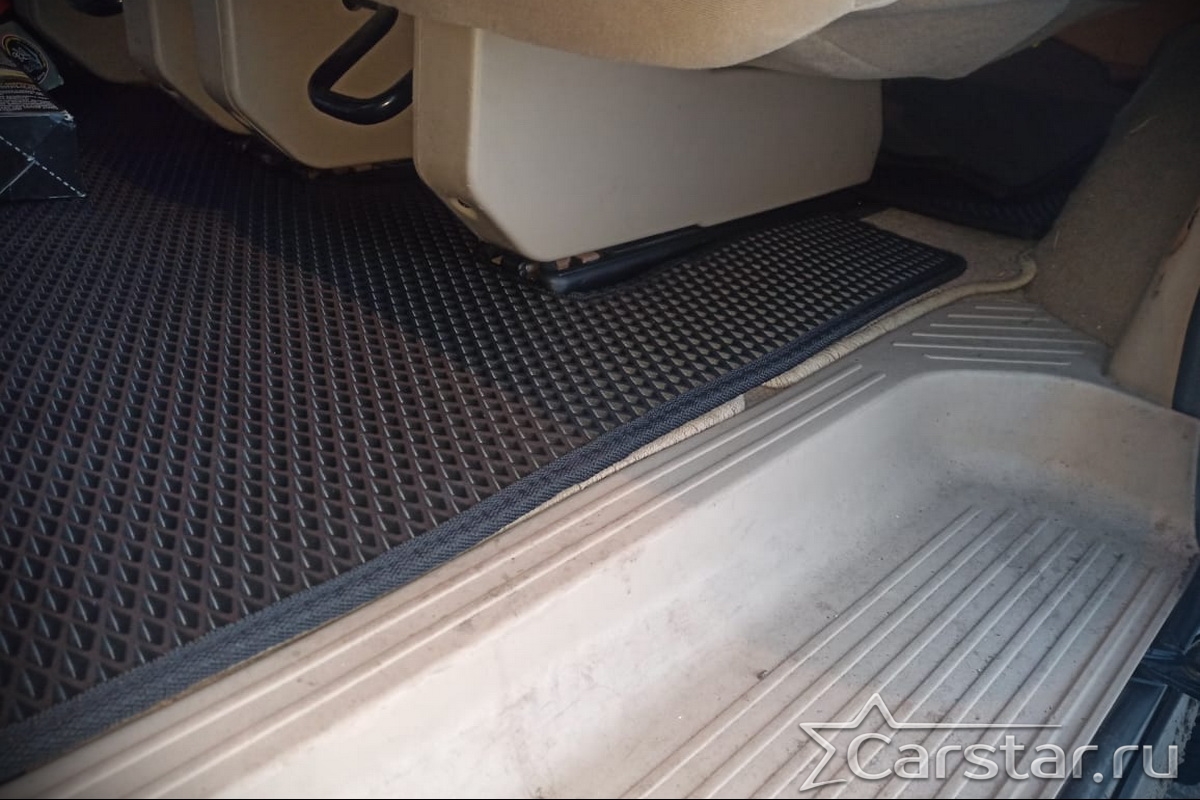 Текстильные коврики надёжно крепятся с помощью оригинальных систем фиксации. Обратная сторона имеет противоскользящее покрытие, что обеспечивает защиту от смещений и безопасность. Максимальное удобство достигается точными лекалами.