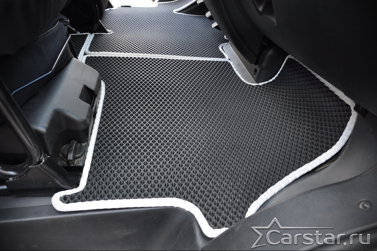 Текстильные коврики надёжно крепятся с помощью оригинальных систем фиксации. Обратная сторона имеет противоскользящее покрытие, что обеспечивает защиту от смещений и безопасность. Максимальное удобство достигается точными лекалами.