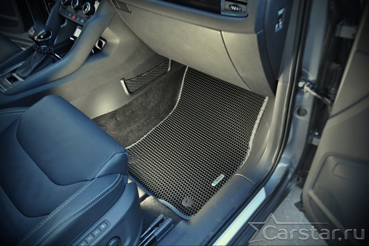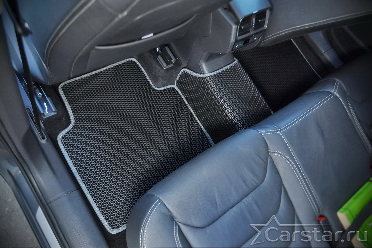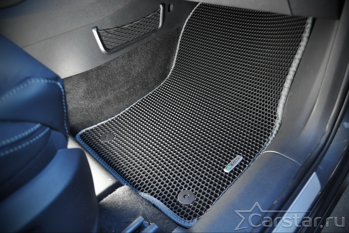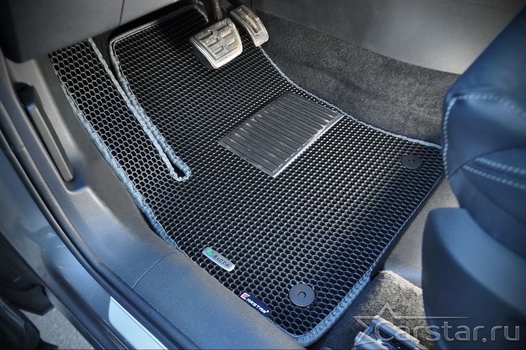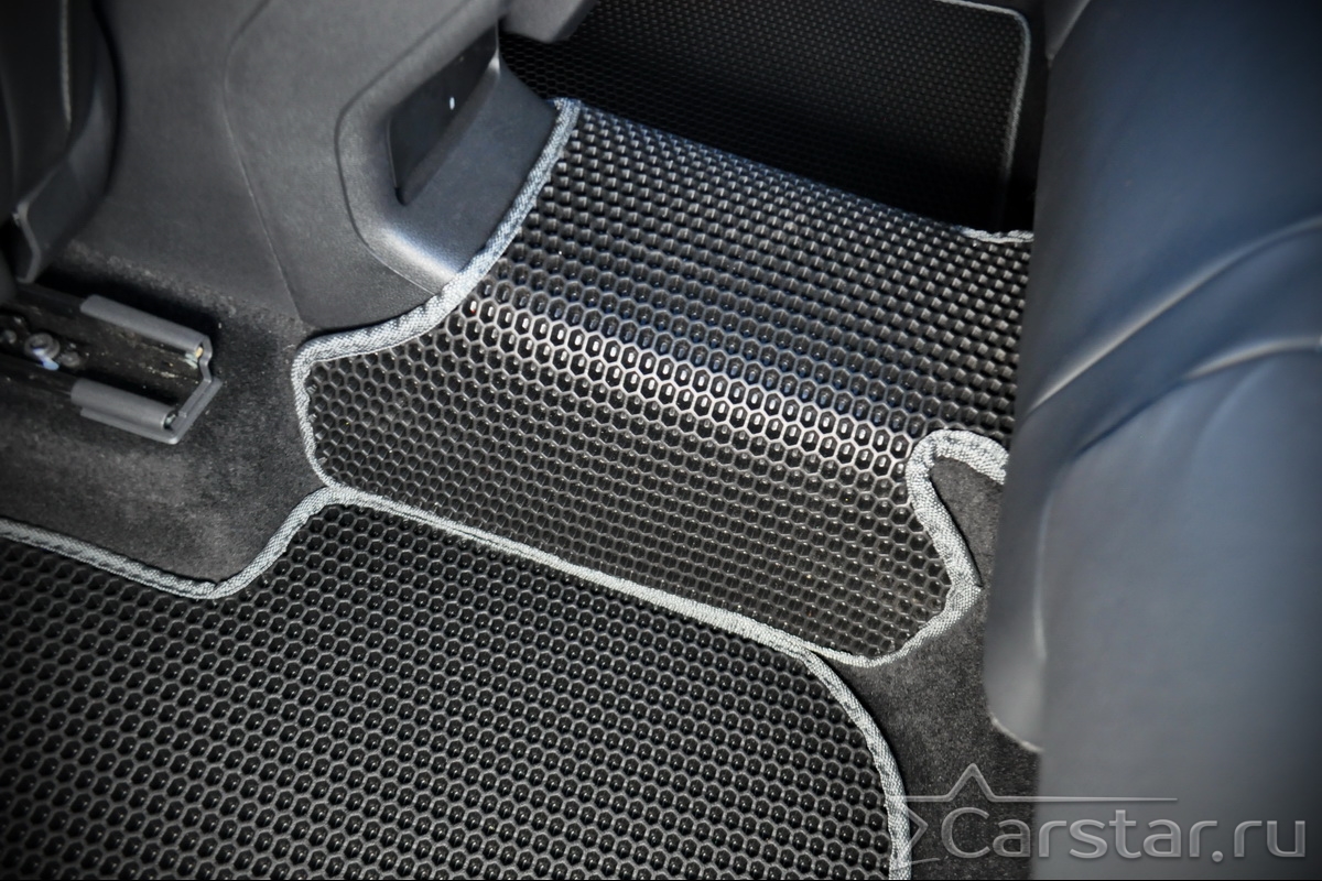 Текстильные коврики надёжно крепятся с помощью оригинальных систем фиксации. Обратная сторона имеет противоскользящее покрытие, что обеспечивает защиту от смещений и безопасность. Максимальное удобство достигается точными лекалами.