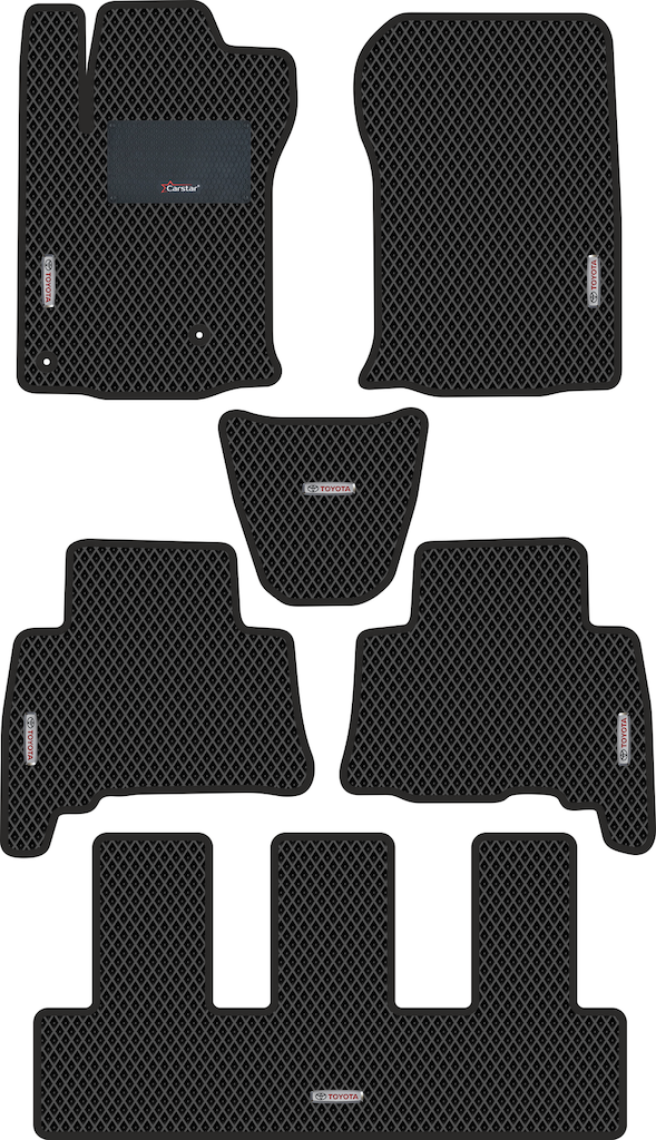 Текстильные автомобильные коврики Toyota Land Cruiser Prado 150 3 ряда (2009-2013) – это классический аксессуар, который обеспечит салону автомобиля неизменную чистоту, порядок и уют. Компания Carstar предлагает изделия из качественного ковролина в сочетании с полипропиленовым основанием на шипах, такая комбинация делает их прочными и водонепроницаемыми.