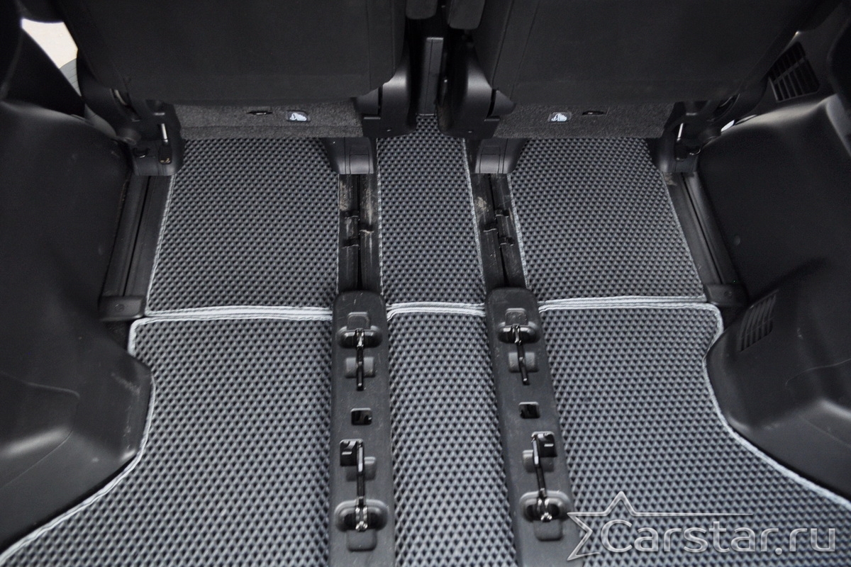Текстильные коврики надёжно крепятся с помощью оригинальных систем фиксации. Обратная сторона имеет противоскользящее покрытие, что обеспечивает защиту от смещений и безопасность. Максимальное удобство достигается точными лекалами.